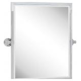 23x24''Polished Silver Metal Framed Pivot Rectangle Bathroom Mirror in Stainless Steel Tilting Beveled Vanity Mirrors for Wall