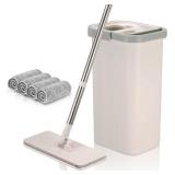 YKWARE Mop and Bucket with Wringer Set for Floor Cleaning,with 4 Washable and Reusable Microfiber Mop Pads Refills,Hands Free Squeeze Flat Mop,Wet and Dry Use, for Home, Kitchen, Bathroom-Gray