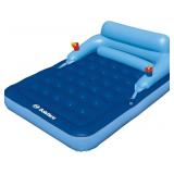 Intex Fun'N Fruity Play Center is 8ft L x 6ft 6in W x 2ft 4in H inflated. Includes water slide, inflatable arch, flamingo, monkey, ring toss game and 5 balls to fit the wall. Landing mat for extra padding. Includes control valve to adjust water flow. Drain plug in pool floor. Small pool is equipped with overflow drain hole to fill to no more than 4.5in water height for younger children 15gal. Larger pool capacity 8in wall height: 130 gal. Made with 12ga vinyl. 178 lb max weight limit. For ages 2 to adult. Great fun for the entire family.