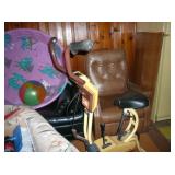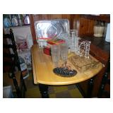 Men's watches Vtg., Lenox, silver plate, Pewter, Milkasa, Ton's of Disney, [Mickey], plates, clocks, cars, tree ornaments, etc still in boxes Ton's of Barbie, dolls, plates,tree ornaments etc, still in boxes Shirley Temple books Danbury Mint Presidents pewter 39 pieces/ with case by David Larocca United States quarter collection in frame Living room sofa velvet dark blue never used Striped side chair never used Metal/ glass cocktail and end table Vtg., end table with lamp Two french style side chairs Trunks Credenza with benches rattan Asian lamp Dining roon table, leafs, pads, six chairs oak China cabinet side board wine rack Silver ware cabinet Candle holders Sofa sectional with end table, one end sofa bed Book case glass front opens up ward Hand made tapestries and needle point art work White twin bed with storage, chester draws, dresser White entertainment center, white wall shelves Rattan dresser with hutch Rattan trunk Two white destressed night tables Asian bed room full bed, two night tables, chester draws, dresser Mirroros Wicker cocktail table T.V. Organ Hammond the Piper/ music books, bench Hanging racks for wine glasses Bar stools Hanging lights Easel Wooden folding chairs Ton's of albums 50's 60's 70's Washer & dryer Tree little refrigerators Morse Stereophonic in cabinet Computer desk & chair Microware cart Cameras Patio chairs and little side tables Seasonal Bistro set Ladder Ton's of clowns