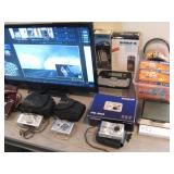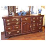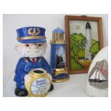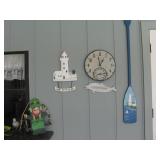 Nice eclectic mix of furniture with lots of nautical & lighthouse decor, home goods, tools & much more. La-Z-boy: 2 Plush Lever-action Reclina-Rockers, Matching Blue Pillow-Top Arm La-Z-Time Electric Reclina-Way Motion Sofa & Twincliner Spring Powered Love Seat. Modular wall unit entertainment center (can separate...), traditional style living room wing chairs, ottoman, lamp table, cabriole leg end tables, matching drop-leaf coffee table, deco chest of folding tables, vintage Duncan Phyfe style dining table w/pads & 6 shield back chairs, slender illuminated display cabinet w/beveled glass & mirror, trad. style broken-pediment design King poster bed suite, nightstands, highboy on cabriole legs & large dresser with triple vanity-mirror, beautiful deep vintage art deco style burlwood vanity with tall mirror, coastal style white pineapple post Queen bed, white chest of drawers, lighthouse painted small louvered cabinet, unique dual-birdhouse styled table, white enamel rocker, deco style parquetry inlaid beveled edge recessed face birch mid-century modern style dresser w/diamond shaped pulls, common high-boy, small file cabinet, modern office chair, book shelves, Sewing & embroidery craft, rotary mat boards, grids, geometric stencils, art easels, raggedy Ann doll, stuffed animals, Santas, Christmas, musical instruments incl. Panasonic piano keyboard, student acoustic guitar, Cecilio electric violin, U.S. Regulator bugle, misc. kitchen, wine rack, cast iron skillets incl. blue Analon, special bake pans, clean 90's KitchenAid mixer, vacuum food saver, coffee grinder, crockpots, deep fryer, bread makers, food processor, cutlery, corning ware & Pyrex, Fitz & Floyd Shore Lights, Gorham silverplate, Norman Rockwell mugs, Blue willow old fashion glasses, Cut crystal stemware, Coca-Cola Miami Dolphins glasses, Ball jars, Detecto hanging produce scale, regulator anniversary & other clocks, vintage flow blue English Staffordshire pitcher and bowl, Wedgwood Blue and white, leaded glass swag lamp, floral chandelier, film & digital cameras including Canon A1, Kodak Retinette IA, Pentax, Nikon, Olympus, Magellan & Garmin GPS, weather radio, 3 mid/small size LCD TVs, name brand home electronic video & stereo equipment, speakers, subwoofer, VHS, DVD, CD, cassette tapes, Records, few books, iPad3 Wi-Fi, slide & 8mm movie projector, Da-Lite proj screen, tripod, barely used iRobot Roomba, bowling balls & Streamline carrier, newish 4-wheel walker, few tchotchkes, toy wooden car model 30's coupe, Snap-on coin bank, mariner seaside captain themed items & framed art incl. large signed Al Hogue "serenity cove", seabirds, sailboat art, swag window treatments, Exerpeutic cross country ski type exerciser, Ancestry DNA kit unopened, 24" wire dog kennel NIB & more...