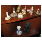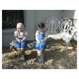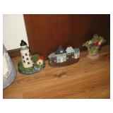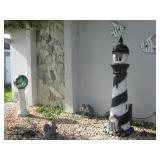 Lanai & Outside: posh wicker chair, ottoman, fiberglass glider couch, high-back swivel chair, round side table, misc. chairs, numerous mostly small statuary of animals, children, larger lighthouse, outdoor benches & more..