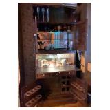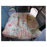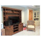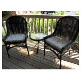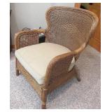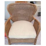 WICKER FURNITURE: COMFY ARMCHAIR, ROUND PATIO TABLE, 6 DRAWER WICKER DRESSER, ARMOIRE.