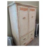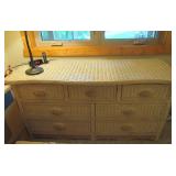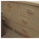 BEDROOMS: WICKER BEDROOM SET; DRESSER AND ARMOIRE. KING SIZE SAATVA MATTRESS AND BASE.