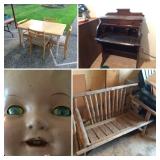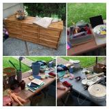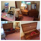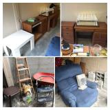 | House items for sale: vintage Disney Seven Dwarfs, smaller refrigerator, IKEA storage unit,,, ladies clothes, recliner, several antique pieces in home, children's antique roll top desk, vintage hand crafted outdoor bench, sterling silver flatware, jewelry, outdoor gas grill, small hand tools, hedge trimmers, lamps, two cedar chests, antique rocking chairs, outdoor furniture, china set, study desk, small shelves, adjustable desk or study area, dining table with 6 chairs, smaller kitchen table and chairs, books, wall art, .Come and enjoy the day with us... |