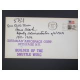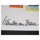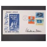 Working at NASA on multiple projects for more than 40 years, Dennis Dobbins built an impressive private collection covering astronauts from the Mercury era thru the Shuttle era. In a time period when an IBM computer filled a room and required dedicated experts to run, his position as a computer data specialist gave him the opportunity to meet a wide range of managers, directors, astronauts, government officials, and more. Over his many years with NASA, and beyond, Dennis focused on building a personal encyclopedia of images and autographs. This extraordinary collection features thousands of signed items featuring Jim Irwin, Wernher von Braun, John Glenn, Eugene Cernan, hundreds of vintage red number NASA images, international and American stamps, covers from 1960 and later from Apollo missions, experiments, Shuttle missions, and beyond. This impressive lifetime project comes to the market in an extensive two night auction, featuring almost one thousand opportunities for you to add something special to your own library of space memorabilia. (No authentication or COA's available. You may contact us to learn about our private viewing opportunities for personal inspection prior to the closing of the auction.) |