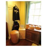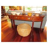 Fine Furniture & Decorative Arts; Yamaha Digital Grand Piano: Yamaha digital grand piano DGT2IIXG with DiskLavier and GranTouch (in need of wiring repair); Antique 1-piece 12-pane corner cupboard (purchased at the Western Reserve Antique show in Hudson, Ohio); vintage Drexel dining room furniture including Mahogany dining table with extra leaves and leaf holder and (6) shield-back chairs, serpentine front buffet, and breakfront with gothic arched doors; antique dovetailed blanket chest; early green painted wooden trough; Camden collection contemporary arm chair; Southwood sofa; like new Sherrill tufted sofa with nail heads (Recently purchased at Chez-Del in Akron); Queen Anne-style tea table with top inlay; Hekman banded mahogany and inlaid sofa table; 2-tier wooden writing desk; distressed iron and leather accent chair; antique oak carved triple bookcase; (2) antique Victorian wash stands; Southwood inlaid open arm chair; vintage Jasper Cabinet Co. mahogany Chippendale-style drop front desk; small iron and wooden étagère with twisted tassel frame; distressed and stenciled bistro table with (4) distressed and painted chairs (purchased at Pine Tree Barn in Wooster); small primitive style benches; antique Shaker-style bench with early green paint; contemporary velvet arm chair with nail heads; Acquisitions by Henredon distressed console table; great selection of hand knotted Persian rugs and runners (and some machine made area rugs), many of the rugs have nice wear for those who love distressed rugs); custom cherry 8-drawer dresser with pull-out for jewelry storage; custom slipcovered arm chair with ottoman; custom slipcovered swivel rocking arm chair; antique Victorian side chairs; Antique Sheraton 4-drawer chest with cookie corners, circa 1825, provenance Jay N. Melrose Antiques; antique hanging wall vitrine; antique drop leaf table; distressed small 4-drawer chest; Young America black painted 6-drawer chest; Antique Eastlake Victorian dresser with mirror; Lexington Furniture (Palmer Home Collection) 2-piece inlaid computer desk; oak 2-drawer file cabinet; wooden and iron accent table; leather and wooden Morris chair; 2-piece slip covered sectional sofa with denim fabric; storage shelves; contemporary media stand; wooden child’s table; cast metal outdoor patio table with (6) chairs, cushions, and umbrella; and more! Quality Collectibles, Household, Fine Jewelry & More: Selection of crystal including Waterford; Serving pieces including Villeroy & Boch, Lenox, Wilton, Don Drumm, custom hand crafted pottery pieces, and more; sets of china including Blue Onion Bavaria Germany set of china; Pope Gosser “Sterling” set of china; quality bar ware including vintage and Crate & Barrel; sterling silver and quality silver plated items; table linens including table cloths, runners, place mats, and napkins; selection of quality table lamps and floor lamps; Lourioux Metropolitan Museum of Art reproduction tureen; Neiman Marcus 19th century reproduction serving spoons with box; fully stocked kitchen including pans by All-Clad, bakeware, Corning, Pyrex, Pier 1 plates, All-Clad marble cheese serving tray, small appliances, Omega 8006 juicer, Fagor pressure cooker, utensils, and more; reproduction shore birds; vintage gilded mirror; gilded eagle mirror; antique brass and iron painted scale; pottery including Stebner; sheet music; baskets; clocks including antique 19th century Jerome shelf clock, Howard Miller wall clock, and other unique clocks; whimsical iron sculpture of a basset hound; large silvered candelabra; selection of many baskets; selection of fine art including prints and originals including B. Dallas Jones original watercolor of the Saxton House in Canton; collection of unique bookends; Beatrix potter Bunnykins figurines and baby dishes by Royal Albert, Royal Doulton, and Wedgwood; mem’s and women’s clothing, outerwear, shoes, and accessories; craft supplies including yarn, knitting needles, and sewing notions; White Model 1955 sewing machine; candles; lady’s handbags including Coach; men’s and women’s scarves and gloves; ball caps; belts; bath mats and throw rugs; bedding, comforters, and blankets; men’s ties, suspenders, and bowties; unique costume jewelry including Brighton and others; Fine jewelry including some 14k gold, 18k and enamel Faberge egg pendant (purchased at Gasser’s in Canton), selection of quality pearls including Mikimoto bracelet with 18k gold clasp, and more, (fine jewelry NOT kept on premises after hours or prior to sale); rosaries; picture frames; luggage; bathroom items; AeroBed inflatable mattress; selection of children’s toys including Hot Wheels, Corgi, Legos, Brio trains, and more; Boy Scouts items; children’s books; sports collectibles; large framed poster of Led Zeppelin with quality framing from Cyrus Gallery; DuraFlame electric logs; nice selection of books and cook books; miniature stadium models Indians stadiums; cigar items including humidors and boxes; pipes; office supplies; LP vinyl records; cameras including Nikon EM and Nikon D40; electronics; selection of amplifiers including Marshall, Stage, Crate, Epiphone; guitars including Austin base, Yamaha 12 string acoustic, The Shredder electric, and Appalachian banjo; Polk audio RM6005 speaker system; other electronics including Sony Digital Audio Video Control center, and more; popcorn machine; pocket knives; party supplies; karaoke machine; golf clubs and items; PaceMaster ProPlus II treadmill; Navy uniforms; vacuum cleaners; Christmas and holiday décor; cleaning supplies; LG Model WM2301H red front load washing machine; GE Steam Technology gray front load ELECTRIC dryer; Giant Sedona women’s bicycle; Whirlpool refrigerator; potting table; garden pots; Kenmore window air conditioner; hand tools; extension carriers; quality pet gates including Orvis; Toro electric blower; Radio Flyer wagon; pet carriers; animal traps; pet supplies; 5 gallon crock; Schumacher battery charger; fans 