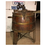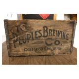 Texaco gas globe, Antique advertising beverage cooler w/ double dot Pepsi opener, pool cabinet, advertising beer crates and boxes from Oshkosh brewing, Peoples, Fischback, Knapstein and Adler Brau, beer mirrors from Budweiser, Miller, Pabst and Old Style, Golden Girl Cola door push, stoneware, weather vane, deer horns, sleigh, dog sled, Honda Express moped, Yamaha QT moped, duck decoys, Wisconsin license plates, Mautz paint sign, musical intrument, wood vacuum style wash machine, primitives, furniture and more.