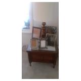 FURNITURE: Oak fireplace mantel, Leather chair and ottoman, Retro furniture, Mid Century Modern furniture, Dining room set, Bedroom sets, Red velvet chair, End tables, Leather recliner, Genuine leather sofas, Hutch, Nice Patio set, Couch, Armoire, Wardrobe, Outdoor patio bar, Kitchen stools, Singer sewing machine and much more.