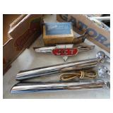 NIB-AUTO PARTS. LOOKING FOR GINGERBREAD FOR A VEHICLE CHECK OUT THE CHROME ACCESSORIES FOR DIFFERENT VEHICLES.FROM THE JET CHRYSLER TO DODGE TRUCK. NIB AUTO: Racing Gauges, Advance Flow Engine Stage 2 Intake Kit, Performance Steering Wheels, Dodge nV4500 2 sp.Transmission Adapter, Hypertech Power Programmer, Toggles, Air Max Gauges, Chrome Color Wire Loom, Remote Auto Locks, Toggles Switches, Pig Tails, Auto Air Horn, Car Starters, Swing Away Truck Work Station, Lic.Plates, LED Light Bars Small to Large, Tadi Brothers Backup Camera system for RV or Truck, Car Cameras for backup, Road Runner Beep Horn, 2 yards of Lizard Fabric, Speciality Tools, Heated Seat Kit, Racing Harness, Chrome window guards & Shield,Truck Cover, Dodge S.S.Fender Trim, Valve Caps & Jet Chrome emblems, handles etc.Olds Decal, Mirror for Toronado, Ram Mud Flaps, Silver Contact Tape & Sun Teck Film, Durango & 69 Dart Exhaust Tips, Tailgate Actuators, Marker Lights. 4 NIB Rims and Trailer Tires. New Camo Scanner, Uniden Amp. & Scanner Parts, LED Utility lights. Hurst Shifter(Not in Box) Camping NIB: Gas Stove & fuel, Collapsible Periscope, Packages Silver Thermal Blankets & 2 ManSleeping Bag, Sm. Refrigerator, Jerri Cans. Tools & Misc: Air Compressors, New Air Hose, 4T Auto Body Repair Kit, Digital Trager, Headrest Release Keys,Klutch Tips, Rivet Kit, Pedestal Stand for Grinder, Creeper,Oils and garage supplies,Organizers, NIB car steam cleaner, Hudson & Olds-Old service Manuals, IH Book, New Body of Fisher Book, Car Advertisements & pictures,Tie Down, Ratchet Straps, Chain Binders & chains, Seeder, Router, Ax, Bottle Jacks, Socket Sets, Hoist, Tool Boxes, Tap & Die & Reamer Sets, Old ChainSaw, Anvil, Ext. Cords, Lots of Chains, Sm. Tool Boxes, Bow Saw and Lots of Hardware. PitchForks and Snow shovel, 12x16 Tarp. Antiques & Collectibles: Large Pepsi Sign, crocks, coffee grinder, bottles, blue capped jars, oil lamp, German Stein, Milk Cans, Brass Scale,Wooden Caddy, Pa 1944 Bicycle Plate, RR Light, Hoffman Oil Can & Glass Jar, Old Cradle, Water Can, Sparkless light, Metal Minesweeping Box, Metal Military Boxes, Bottles, gig fork, Dehorner, gauges, Metal Ladle, Old Hand Augers & brass gauges, Wood Plane,Texaco Collector Truck.Banjo- Need Repair. HOUSEHOLD: New Items- H.D. Lift Chair & Total Gym Unit, Coke Neon Clock, New Leather Jacket, Vest, & Tactical TeeShirts. Freezer 25.3 c.ft.-Not Cooling Good for Feed Bin. Metal Detector, Channel Master for antenna. TOO MANY ITEMS TOO NUMEROUS TO MENTION. THIS SALE HAS MANY ITEMS NIB OR NEW. NICKEYS JO'S FOOD TRUCK WILL BE ON SITE FOR FOOD.