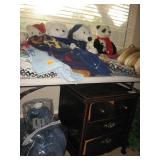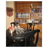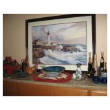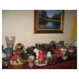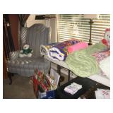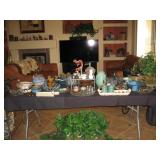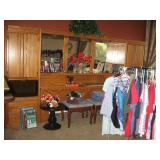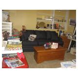 To highlight - Leather sofas; Granite top cabinet and end table; Solid oak table with six chairs and three leaves; original paintings and pottery pieces; Solid oak four drawer file cabinet and corner desk unit; bookcases; many music CD's; Cedar chest; Lazy Boy queen sleeper with new electric pump mattress; large lighted headboard with built in storage; Office supplies; Two free standing petite desks; Christmas decor; Electronics; Flat-screen televisions; Music books; Wing back chairs; Antique Wm. L. clock; many books including cookbooks; Huge wall mirror 5 1/2 ftx 3 1/2 ft; card table set; ladders; a quilters/sewing room filled with material, books and three sewing machines; vintage Table cloths; Men and ladies clothing; lamps; jewelry; artificial plants; patio furniture including two lounge chairs with new cushions; ornate wrought iron wine rack; a full kitchen and much decor throughout home. |
