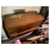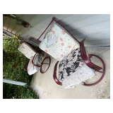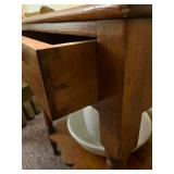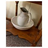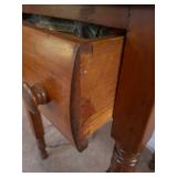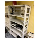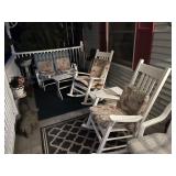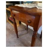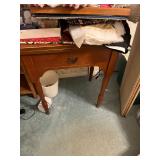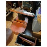 FURNITURE: 10 pc. oak dining room, 3 Pc. bedroom set, 3 Pc. Kitchen set, Cedar chest, Childs mahogany chair, Painted white antique dresser, Work table, Antique foot stool, Tea wagon, Antique washstand, Antique oak rocker, Sofa & matching chair, Drop front stand, Quilt rack, Antique cane seat chair, White cabinet, Mirrors, Storage shelves, Patio rockers, Early pained bench, Porch rockers, Sewing machine, Oak two tier table, Vintage plant stand, Decorative fireplace, Metal storage cabinet, Yoke coat rack, Patio furniture and MORE!