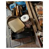 MISC.: Cuisinart ice cream maker, Chest freezer, Large amount of yarn rolls, Hoover steam vac, Portable heater, Kitchenware, Aluminum ladder, Fiesta Optima gas grill, Shark vacuum cleaners, Fans, Mason jars, Filing cabinets, Baskets, DVDs, & CDs, Planters, Household items, AND MUCH, MUCH MORE!