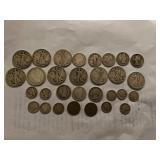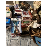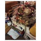 COLLECTIBLES: Stoneware decorated crock, Vintage quilts, Christmas ornaments & decor, Christmas villages, Walking Liberty Silver half dollars & US coins, Barber quarter, Mercury dime, Vintage costume jewelry, 14 K gold jewelry, 10K gold bracelet, Lighted beer sign, Oil cans, Mickey Mantle record, Vintage toys, Framed sampler, Framed art, Rooster figure, Flamingo vase, Hull art vase, Vintage set of Retirement Fund banks, Depression green juicer, Carnival glass, Brownstone mantel clock, Kerosene lamps, Dolls, Lenox, Pyrex, Pottery & Porcelain, China, Large amount of puzzles, Lamps, Fenton dish, I Love Lucy cookie jar, Framed prints, Taxidermy buck mounts, Rooster lamp, Stemware & glass, Desk lamp, Taxidermy turkey mount, Browning compound bow, Hunting clothes, John Deere foam trucker hat, LP records, Stereo system & turntable, Linens and fabric, Hunting thermometers, Silk flowers, AND MUCH MORE!