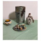 - Culturally Diverse Decor Lot With Carved Pipe