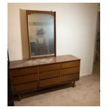 - Wooden MCM Style Dresser With Mirror