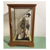 - Asian Doll In Wood And Glass Case