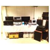 Paper mâché Fruit and Vegetables Vintage Andrea by Sadek Ram Head Book Ends Match book collection that includes the Starck Club, Sfuzzi's, and more! Vintage Fred Press Bronze of Aries Vintage Vis-Ed French vocabulary cards The BEST album collection ever that’s full of 80s alternative and dance music Howard Miller Westminster Chime Wall Clock Mason’s Vista Serving Bowls Hand Woven Baskets Lighted Globe Blown Glass Vase and Flowers License Plates Vintage Mallory Radio Budweiser Wood Crate American Airlines Posters DECOR Tall Iron Candelabra Colored glass vases, bowls and plates Fabulous contemporary Nova lamps Karastan New Rhythm 6’ x 9’ rug in plum from the “Composition” Collection 8' x11' rug and matching runner Table, desk and floor lamps Dale Tiffany Stained Glass Mission Style floor and table lamps Original art and prints Faux ficus trees Throw pillows Large wall medallion Candles Pedestals Bust of David Mirrors Hand-Carved Wood Boxes Book-ends Art Prints from Park Place Gallery in NYC Fireplace screen with tools Visio 60" LCD 3D TV Samsung 6 piece Surround Sound System Speakers Hitachi Plasma TV Digital Photo Frames Koss Speakers JVC Ultra Compact Component System Pioneer Receiver VSX-305 Sony DVD player Bose Speakers Lots of speaker wire Electric cords of all kinds Phillips VHS player Sony CD player Westinghouse Flat Screen TV Tivo with LIFETIME SERVICE!