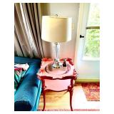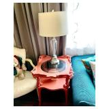 - 2 Painted Peach Colored Solid Wood Side Tables