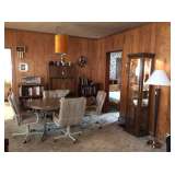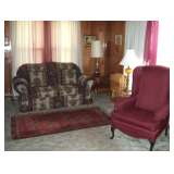 Nice burgundy floral love seat; pair of burgundy formal Wingback chairs with Queen Anne legs; Cape Cod by Kroehler, three piece maple bedroom suite; 1960's-70's matching long dresser with mirror and chest of drawers; lighted curio cabinet; oval kitchen table with four rolling arm chairs; computer desk; platform rocker; roll top desk; entertainment center; Lane cedar chest; hide-a-bed couch; 1960's small kitchen table and four padded chairs; round outdoor metal table and four chairs; tall and narrow white metal cabinet; black lacquer round folding game table and chair set; Amana electric stove and side-by-side refrigerator with ice maker in side door; Mid-Century table lamps; Kenmore floor model electric sewing machine; antique black mantle clock with columns; SCD Venturer surround sound system; small G.E. black mini fridge; Black and Decker electric mower; Homelite blower; vintage red metal Coleman cooler; lots of hand tools; floor globe; quilt rack; lots of luggage; double wedding ring quilt; CD's; books; including local history; old picnic basket; shop vac; filing cabinets; Middle Eastern hand woven rugs (very nice!); several wall tapestries; lots of kitchenware including pots and pans; glassware and utensils; large metal shelves; lots of Christmas; house and basement full!!! All items are priced and ready for immediate purchase. Note, this is a three day sale. Next week's sale is a two day sale on Friday and Saturday in Mulkytown. Like is on Facebook |