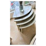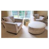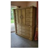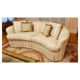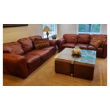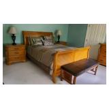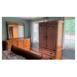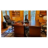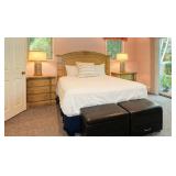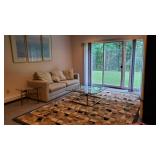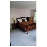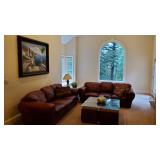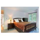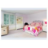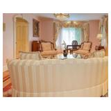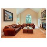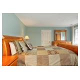 FURNITURE: Upholstered kidney shaped sofa by Stickley, Leather sofa and loveseat, Glass coffee table with four under cube stools, Quality rustic style kitchen set, table with eight chairs, Three bar stools. Stanley furniture bedroom suite in white. Two other complete bedroom sets with queen size beds. Custom made king size headboard. Upholstered easy chairs. Custom made wall unit which includes a bar. Tv wall cabinets, Sleep sofa, Glass coffee and end tables. Large desks and office chairs. Decorative Mirrors. Leather recliners.