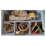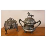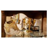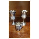 SILVER AND JEWELRY: Sterling silver candleholders, Sterling silver figurines, Sterling covered compote, Plated boxes, urns and cups. Selection of jewelry including .925, Costume and Gold
