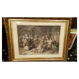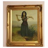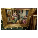 ART: Many very nicely framed pieces. Includes, Oils, Pastels, Watercolors, Needleworks and Prints. Some Antique. Some Vintage. Some Newer. Large bronze figure of a young girl.