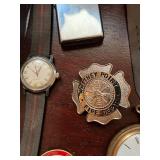COLLECTIBLES: Oil cans inc. Atlantic Aviation, Mobil, Texaco, Pennzoil, Prestone, Kendall, Kenlube, Mercury Quaker State, Archer oil can, Dupont Rifle powder can, Folgers coffee can, Pyrex, A.W. Co. Waltham Pocket watch, Firemen Pins, Zippos inc. USS California zippo w/ box, Antique cast iron dog bank, Vintage Coca Cola tray, Fire horn, Victorian frames, Vintage photos and prints, Whitney Point Fire Dept. License plate cover, Mickey Mouse watch, Men's & Ladie's watches, Whitney Point Fire Dept. badge, Shirley Temple pitchers, Oil lamps, Sears Roebuck saw shop clock, Advertising thermometer, School bell, Vintage Sterling Model airplanes, Models, Kitchenware, Hair Bear Bunch metal lunch box, Upjohn's Friable pills ash tray, Vintage toys inc. metal race cars, Folk Art cane, Vintage puzzles, Lone Ranger puzzle, Mickey Mantle photo, Topps 1970's Wilt Chamberlain card, Topps Guy Lafleur, Phil Esposito, 1975 Topps mini Mike Schmidt, Hank Aaron disc, Johnny Bench book, Springfield Indiand program, Syracuse Blazers program, Binghamton Whalers program, Vintage NHL Topps hockey cards, Broome Dusters Hockey programs, 1910 Corn Hill Creamery calendar, Vintage post cards and Ephemera, Real photo post cards, Currier & Ives prints, Joie Chitwood programs, Christmas blow mold, Carols & Pepsi Character glasses, World's Fair glasses, Superman glass, Return of the Jedi & Empire Strikes Back glasses, Dionne quintuplets photos, Early photographs, Beer steins, Utica club mugs, Walt Disney Mickey Mouse toy, Buttons, Porcelain & glass, Tin Man toy, Wooden tool box, Fishing poles and lures, Fishing basket, Military patches, Yashica camera, Brite-Bore Rifle cleaning kit, Avon bottles, McDonalds Hamburglar doll, Vintage bread box, Hamilton Beach mixer, Books, Wooden sled, Vintage horse rocker, Christmas ornaments & decor, Large Frosty the Snowman decor, Halloween decor, Holiday decor, Early wooden box, Beer Cans, Collector plates, Vintage mini bubble gum machine NFL helmets, Fish spotter, Fish Lo-K-Tor, Vintage pipes w/ stands, Insulators, Pitney Bowes scale, Industrial light, and MORE.