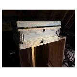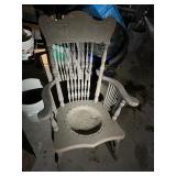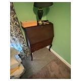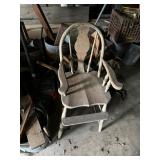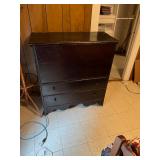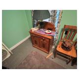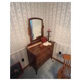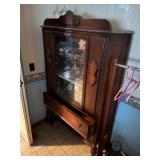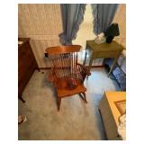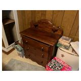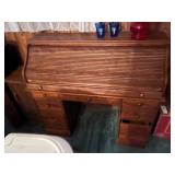 FURNITURE: 5 Pc. Kitchen set, Gun cabinet, China hutch, Antique floor radio, Oak washstand, Drop front desk, Curio cabinet, Blanket chest, Oak dresser, Waterfall vanity w/ mirror, Armoire, Roll top desk, Two tier oak table, Bookshelves, Rocking chair, Washstands, Set of 4 oak chairs, Child's high chair, Recliners, and More.
