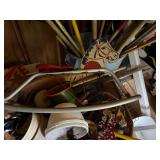 MISC.: Antique car fenders, Fireman gear, Werner 20 ft. aluminum extension ladder, Craftsman 1/2 HP chain drive garage door opener in box & rail, Sharp microwave, Toshiba flat screen TV, Hundreds of animal traps, Piles of lumber, Planters, Toro snow blowers, Stepladder, Kids scooter, AND MUCH MORE!