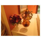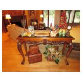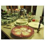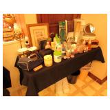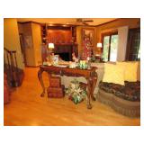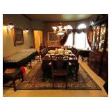Fine Furniture & Decorative Arts: Beautiful Stickley Furniture mahogany Chippendale-style dining table with banded inlay, 3 leaves, custom pads, and (10) chairs; Stickley Furniture 2-piece mahogany breakfront with banded inlay; Stickley furniture mahogany bar or serving cabinet with banded inlay; Pair of antique 19th century French Empire style gilt bronze and verde marble pedestals; Hammary oak drop leaf end table; Hammary oak 2-piece oak nesting table; Hammary furniture oak side chest; Hammary oak oval glass top cocktail table; custom upholstered white damask sleeper sofa; (2) Willow Creek Furniture Chippendale-style floral upholstered wing chairs with ottomans; beautiful Asian pierced carved collector’s cabinet; selection of unique ornate mirrors (some gilded); Pair ornate large gilded corbels; Ethan Allen “Traditional Classics” Chippendale-style wing chair; Amish oak 3-piece nesting cocktail table; glass bowl on iron stand; selection of unique and quality lamps including Baldwin Brass; ornate carved pedestal étagère; Maitland-Smith patinated and verdigris bronze round glass top dining table with a trio of swimming dolphins and also with (6) complimenting verdigris iron chairs by Woodard; iron folding baker’s rack; Chippendale style custom crafted hunt board; custom upholstered cocktail ottoman; C. R. Laine Furniture Co. 3-piece sectional sofa; ornate carved living room furniture including (2) carved side tables, cocktail table, and console table (all with custom glass tops); Chippendale-style wing chair with ottoman custom upholstered in a deep purple damask; Universal Furniture ornate carved oval pedestal side table with drawer; Ethan Allen swivel rocker with ottoman; Universal Furniture Co. carved bedroom furniture including king 4-post bed, dresser with mirror, (2) end tables, and (2) 2-piece armoires; Universal Furniture Co. carved round cabinet; Antique Columbia Grafonola Type E-2 phonograph; carved 4-piece lighted entertainment media cabinet; set of (4) green leather bar stools with nailheads; antique Mission oak clock; wooden and marble top pedestal; office chairs; “Oak Crest” oak s-curve roll top desk; Carved Chippendale-style queen poster bed; pine rent style end table; faux leather and woven trunk; stenciled rocker; child and doll cradles; (2) sets of Serta SertaPedic twin mattresses and box springs (never used); Amish oak small side table; large (chair and a half) chaise; media stand; queen bed with Tempur-Pedic mattress and box spring; computer desk with pine finish; whitewashed pine finish bookcase; upholstered child’s rocker with tassels; white distressed side chest with woven front; child’s crib; drafting or art table; 2-drawer metal file cabinet; 3-section oak shelving unit with lights by Hammary; maple twin bed; pine toy chest with upholstered lid; ivy stenciled chest and matching bookcase; pine 4-drawer chest; small vintage sewing stand; Yamaha Electone F-25 electric organ with bench; Hampton Bay outdoor glass top patio table with (6) chairs and cushions; Riverside Furniture 4-piece media cabinet with display shelves; pine quilt rack; Safavieh full size tufted headboard; (6) adjustable Grosfillex white plastic patio chairs from France; Lane oak cedar chest; selection of various console tables and side tables; unique Jack Daniel’s whiskey barrel (varnished and signed by master distiller); antique dresser with mirror; Amish made oak dry sink; 3-piece tessellated stone and iron nesting tables; Woodard iron 3-seat iron glider sofa; and much more! Quality Collectibles, Household, & More: Selection of Crystal including Swarovski, Waterford, Orrefors, and more; Japanese Kagami colored pair of wine glasses in presentation box; green stemmed French wine glasses; large assortment of quality barware and drinking glasses by Riedel; selection of table linens including Beauville; Noritake “Savannah” set of china; Pewter including “Old Sturbridge Village” Stieff; many Timken Company related items; Christofle Sterling Silver 8x10 picture frame; many unique items from around the world including France, India, and Japan; collection of Hummel figurines including many unusual; collection of teapots; many unique Fitz & Floyd pieces; Oneida stainless steel flatware set; Japanese porcelain Giesha doll in display case; Chinese wedding basket; quality framed prints and original signed oil on canvas paintings; gemstone painting of Taj Mahal; Japanese carved and lacquered table screen; amazing collection of Christmas items including many Santa figures by brands such as Fitz & Floyd, Possible Dreams, Christopher Radko, and many more; large amount of books; nice selection of finely hand knotted silk rugs; scarves including Hermes, Bvlgari, Aigner, Versace, and more; selection of unique costime jewelry; watches including Citizen and Seiko; large assortment of handbags and purses including Cole Haan, Brahmin, Coach, Kate Spade, and more; Yoshimi still life painting; women’s shoes including Salvatore Ferragamo, Stuart Weitzman, Kate Spade, Jimmy Choo, and more; men’s and women’s clothing and outerwear; large assortment of picture frames; large assortment of bathroom related items and towels; small Mikimoto desk clock; Japanese Jingdezhen porcelain vase; quality faux florals; unique selection of fall décor including faux pumpkins and wreaths; large assortment of Longaberger baskets; household cleaners; irons including Rowenta; Whirlpool Duet frontload GAS dryer; Amana side-by-side refrigerator; candles, planters, vases; floor steamers; Two fully stocked kitchens including pots and pans by All-Clad, utensils by Cutco, Pampered Chef, Williams Sonoma, and more, bakeware, Corning, Pyrex, Kitchen-Aid heavy duty mixer, Saeco coffee pot, Cuisinart food processor, and other small appliances, many canning jars, dinnerware including Hallmark Home Collection by Sakura “Holiday Abundance” (service for approximately 36), Sur La Table Italy dinnerware set; large “Garland