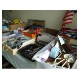 | Hugh collection of Tools & Gadgets!!! Drills, saws, planes, sanders, wrenches, vices, etc. . . Much too much to mention. Fishing poles & equipment, large collection of kitchen gadgets & knives. Maple kitchen set with 4 chairs, small ladies desk, carved trunk, wicker rocker, dark oak dining table (2 leaves, 6 chairs). Pine hutch, living room furniture, single beds, dressers, occasional chairs, collection of elephant figurines. Bike, garden tools, ladders and so much more! Directions: Rt 6 to exit 8 (Station Ave.,South), Right on Old Townhouse Rd., Left on Forest Ave., Left on Winding Brook Rd. to #49. Parking on one side only. Please do not park on neighbors lawns. |