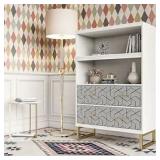 The Scarlett 47.25" H x 27.99" W standard bookcase is a decorating dream come true. With a modern silhouette in the finish, this product will liven up any space. The bookcase includes two chic patterned drawers to store your ~things~ and two open shelves to accessorize. A wall anchor kit is included to prevent tipping injuries. #SafetyFirst. Built on durable gold metal legs, these bookcases are made with all of your design desires in mind.