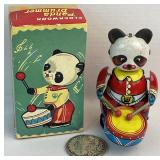 Vintage 1977 Clockwork Tin Toy Wind Up Panda Drummer w/ Original Box & Key WORKS |