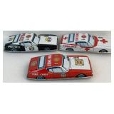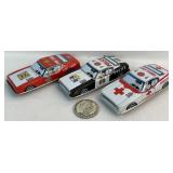Vintage 1960's Lot of 3 Tin Litho Friction Cars (Police, Ambulance, Fire Chief) NEW |