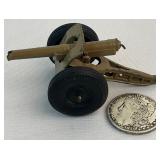 Vintage 1940's Barclay Lead Cannon Cap Gun Brown w/ Rubber Wheels WORKS |