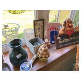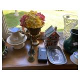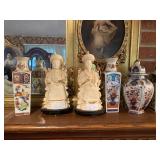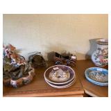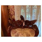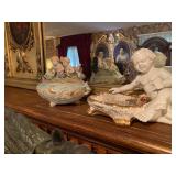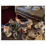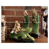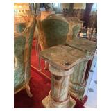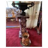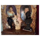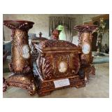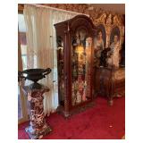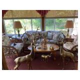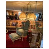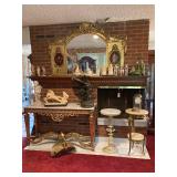 Woven rug collection of Chinese cut, never used from Wanamakers in Philadelphia. Sofa chair, and chair with ottoman, 3 piece carved and painted with Damian fabric. Pair of carved eagle chairs. Pair of fireside chairs, marble fireplace mantle with tools. Solid cherry province headboard full-size with chest, dresser, mirror. Many figural lams, 3 piece beautiful rattan sunroom set with accent table. Pair of carved mahogany curios 30 in w 7 ft tall. Paint decorated, carved sideboard and Bombay chest. Pine and walnut dining room table with 8 chairs with 1 leaf. Large crystal chandelier. Solid breakfast Mahogany table with 4 chairs. 3 piece guilted cocktail table set. Marble pedestals including pairs of chocolate brown, black, green, alabaster and regular. Many luster lamps, plus others lamps. Gilded marble top console tables. Marble top victorian tea table. Brass Elephant, and 7 ft carved framed mirror plus others mirrors. Pair of iron planters - many concrete outside furniture pieces. Large rubbermaid shed, and tools. Bar accent pieces . Kitchenware, pyrex, stemware, mikasa plate-ware , royal cuban china, blue and white china. Oriental figurines, pair of large brass reindeers. Important signed marble bust, bronze statue, alabaster bonnet women. 100s of new and old quality figurines, Carved victorian Nagahide sofa. Clocks, ceramics. 3 stooges collectibles and our gang games. TV, and so much more! |