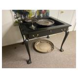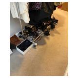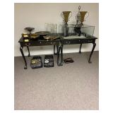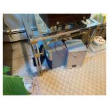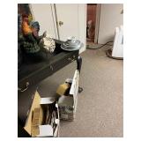 Please bring your own shopping bags Thank you! Modern home offers, serpentine 80’s sofa, pair of glass with ice block legs coffee tables, dining room table & chairs, large brushed metal bench with round back, Bombay style armoire, grey leather sectional with ottoman, glass & metal coffee table, pair of black leather puffs, printed sectional, display tables, painted Bombay style chest, stainless, brass & glass end table, fabric & chrome chairs, stainless chair, overloaded with art, lucite clock, Coal Port & more china, Black Starr & Frost mantle clock with matching candelabras, Maj Jong set, vintage electronics, records, shearling coats, treadmill, Bike-Max, Free Form gym, vintage outdoor furniture, lots and lots of plants, watches, lots of bric-a-brac & much more!! |