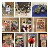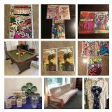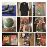 Two client sale. Client #1 - household items, stunning triple "globe", floor-length Capiz chandelier, trophies, MGB transmissions, Razor minibike, mink stoles, model planes, ping pong table, military trunks and more. There is evidence of termites in the house. Client #2 - COMIC BOOKS. All comics are boarded and plastic wrapped, unless noted otherwise. Not stored in client #1 house. Pickup is October 12 from 3-5pm.