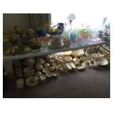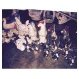 | Lighted curio cabinet; small butchers block; bookcase with glass front doors; Kitchen Aid side by side refrigerator; 4 pc cast aluminum grape pattern loveseat, 2 side chairs and planter; 25+ pieces of Shawnee King Corn; UHL Blue Stoneware pitcher; large set of Hall Cameo Rose; 200+ pieces of Pfaltzgraff Yorktowne Tan & Brown including hard to find pieces; Jade-ite milk pitcher; over 100 Homco home interior figurines; white Ironstone pitcher and washbowl; 10K white ladies Eastern Star ring; 25+ pieces of American Fostoria Crystal; Harlequin dinnerware; Amberina Glassware; Horsehoe green depression glass service for six 47 pieces; Fenton cranberry glass vase; 30+ pieces of Moss Rose; 100+ pieces of Crystal Wexford; teacup and saucer collection; 1950's decorated water sets; Imperial Crocheted Crystal punch bowl set; McCoy; Antique green wicker doll buggy; room full of dolls-ceramic, Bisque, porcelain, Cabbage patch, Precious Moments, Ty Beanie Babies; hand stitched quilts; Vintage tablecloths; blankets; Midcentury towels & linens; tremendous amount of kitchenware; small appliances; Corningware, utensils & bakeware; Oreck and Electrolux vacuums; sewing items; office supplies; radios; shed full of lawn & garden tools; 100+ finished ceramic roosters, pigs, gnomes, birds etc...All well done in excellent condition; lots of books; 35+ cement yard decorations; small anvil; room full of the best vintage Christmas ornaments we have ever sold-Shiny-Brite, Poland, West Germany; large Empire lighted plastic yard decorations; 100+ size 7-8 ladies shoes mostly new in the box; large hanging chandelier with over 100 Lucite prisms. House, upstairs, garage and shed jammed FULL!!! All items will be priced and ready for immediate purchase. This is the first of two sales due to space we could not yet empty the attic and storage building. The quantity is unbelievable! Sale #2 is scheduled for July 16th-18th. Please like us on Facebook under Justin Goff Estate Liquidation. We also have ads every Wednesday evening on Southern Illinois craigslist garage sale section. Next week we will have an estate sale in Eldorado full of antiques and Roseville pottery. |