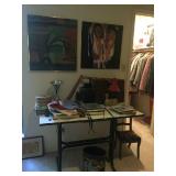 Estate of local artist Marjorie Erbes. Friday June 19 and Saturday June 20th. 9AM to 2PM 6141 N. West Avenue, #101, Fresno CA, 93711. Gated condo complex with limited parking inside the complex. NO PARKING on West Avenue. The city will cite and tow your vehicle. Additional parking across the street on Stuart Ave. an attendant will allow you access. Contents of home and garage to include: Teak (?) dining table with 2 leaves and 6 padded chairs, buffet, Daneker Grandfather clock, Duncan Phyfe drop-side table, sofa, Oriental carved glass top table, marble top coffee table, several cane back chairs, floor lamp, table lamps, TV, 6 padded mahogany dining chairs, painted mahogany drop front secretary desk with glass display, large cedar chest, double bed, nightstands, dresser, vanity, mahogany vanity chair, costume jewelry, figurines, oriental smalls, snuff bottles, beaded clutches, handbags, purses, nice women's clothes medium size (sweaters, tops, coats, scarves, shoes) wicker birdcage, baskets, vintage Singer sewing machine with case, drafting table, books-old and new, “coffee table” books, dozens of paintings and prints both large and small, 3 easels, vacuum, newer large clean GE side by side refrigerator, washer, dryer, pots, pans, kitchenware, glassware, yellow Harlequin, Bauer, Catherineholm enameled mixing bowls from Norway, Fostoria, crystal, Victorian beaded handbags, wrought iron patio furniture, filing cabinet, two metal garage cabinets and so much more not listed or pictured! Don’t miss it! |