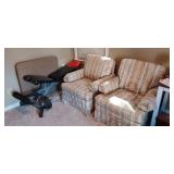 Living Room: Right This is a stereo system that is the best we have ever seen Pair of B&W Bowers & Wilkins 800 SpeakersMagnum Dynalab MD-107 Tuner OPPO BDP-95 SACD/CD/BLU-RAY 2 Glass Candelabras Tan Couch (Has spot) 2 Side Tables Great Table (For TV, Stereo) Floor Lamp Wall Clock 2 Matching Book Cases (Glass doors top half-Storage bottom half) Some other stuff