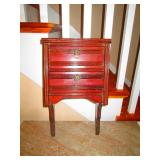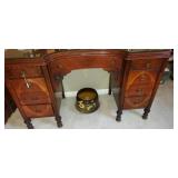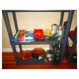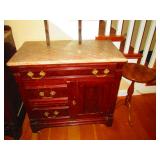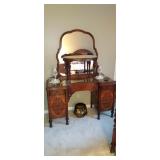 Basement Straight Down Stairs: Eastlake Marble Top Vanity with mirror and Commode First Room Camping Stuff Stansport self-inflating air mat, Flat Screen TV Single Foldup Bed Vintage Coffee Table Dresser Still Yet Again Some Other Stuff