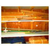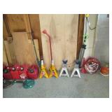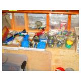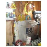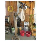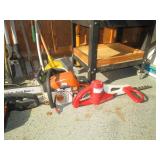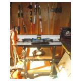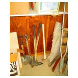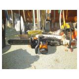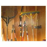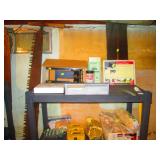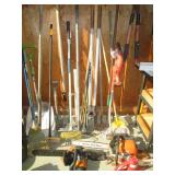 Garage Left Thru Office: Powermatic 64A Table Saw, OTC 6980 Brake Drum Gear Puller, Garden tools – rakes, shovels, hoes, Black & Decker Weed wacker, Fiskars tree pruner, Corona and Black and Decker Pruning shears, Honda HRX217 Lawn Mower, Bosch Router table, Jet Drill Press JEP-17MF. Delta Planer. Rockler Dust Collector – wall mount model 42400, California Air Tools Air Compressor #10020C, Gas Cans 3-ton floor jacks, Hydraulic Floor Jack 3 ton Craftsman, Bridgestone Emergency Kit, Stanley Fat Max Saw Horses, Worx Electric Chain Saw Model WG303.1, Stihl Farm Boss Chain Saw MS290, Large quantity of Motor Oil, Car products, Gardening products, misc., Warner Step Ladder, Hults Bruk Axe, Rockler Roller Stand, Again Some other stuff