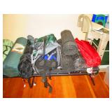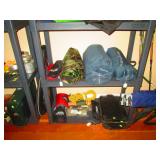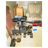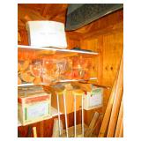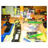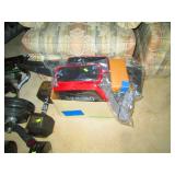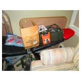 Office Left: Pair of Chairs, Table, Lamps, Office Chair, Model Kits Christmas Stuff Work Out Table Weights 30 lb and up Air Brush and Paint Sporting goods: Wilson Ncode N5 oversize tennis racquet, Wilson Hyper hammer 5.3 overside tennis racquet