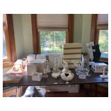 This Beautiful Home is Loaded! With tons of furniture, including a roll top desk and chair, a Provincial King size Bedroom set. Bennington Pine Dining room set, a Provincial dining cabinet, and a print sofa. A white bedroom dresser, a computer desk, and bar stools. Wall sconces, Lamps, Prints and Paintings. A treadmill, exercise bike and other gym equipment. Rugs, CDS and books. Tons of Kitchenware, including Bread maker, pressure cooker, food processors, rotisserie, and so much more. 134 piece Franciscan ware. 125 piece English blue willow. Blue and White Spode dishes. A piggy collection. Blue glass, oriental items, perfume bottles, stereo systems record collection, Lenox collection, and entire Christmas room, including Front gate holiday collection fiber optic Christmas tree, and Lionel trains. Mens and Women's clothing, Over 10,000 pieces Swarovski beads and crystal, finished jewelry and vintage watches. Cameras, Kids toys, dolls. BRAND NEW WOOD WORKING TOOLS. A Lawn mower, a grill, ladders, lots of power tools and garden items.