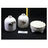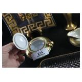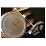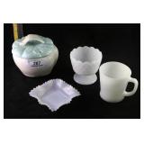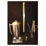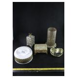 1 - Mid Century Ashtray Table Topper 2 - Stainless Steel Bar Set Bar Ware 3 - Moroccan Bar Glasses & Ice Bowl Bucket 4 - Victorian Chimney Flu Cover 5 - Marigold Creamer & Sugar 6 - Set of 8 Patriotic Glasses w/ Eagles & Rack 7 - International Coin Dot Drinking Glasses 8 - Lot of Amber Glassware-7 Piece Lot 9 - MCM Blue Barware Set -All for one money! 10 - Two Missouri & Tom Sawyer Souvenir Glasses 11 - Blue Grape Pattern Chip & Dip Plus Shot Glass 12 - Clear/Cranberry Chip and Dip Set 13 - Amber Crackled Glass Pitcher 14 - Cobalt Blue Decanter 15 - Cobalt & Silver Pitcher 16 - Turquoise & Gold on Clear Bar Set 19 - 3 Drinking Glasses 20 - Beautiful Pink Dresser/Powder Box with Butterflies 21 - Set of 4 Drinking Glasses 22 - Two Ruby Red Glasses 23 - Set of 8 Coin Dot Drinking Glasses 24 - Silver over Clear Lidded Candy Dish Jar 25 - Retro Juice Pitcher 26 - Vintage Juice Pitcher No 2 27 - Vintage Lemon & Lime Juice Pitcher 28 - Vintage Pyrex Juice Pitcher 29 - Vintage Retro Juice Pitcher 30 - 2 Vintage Bar Glasses 31 - Huge lot of Gold Banded Drinking Glasses 33 - Lot of Gray Smoked Glasses LOOK 34 - Massive Lot of Gold Accented Glasses LOOK ALL FOR ONE MONEY! 35 - Lot of Silver Banded Barware Glasses/Bowl +++ 36 - 6 Tall Glasses 37 - Green over Amber Drinking Glasses RETRO 38 - Stainless MCM French Press, Oiler Salt & Pepper Frieling French Press 39 - Mid Century Cheese Boards & Trivet 40 - Cream & Sugar Sets & More All for one money 41 - Mid Century Bar Glasses & Ice Bucket 42 - "Vegetable" Platters & Watermelon Salt/Pepper 43 - Leaded Crystal Decanter & Glasses & Candleholders 44 - Mixed Lot of Treasures-All for one money 45 - MCM Bird Bowl 46 - Lot of Glass Fruit & Vegetables 47 - Set of 8 Blue Drinking Glasses- Fostoria ? 48 - Large Lot of Clear Glass Serving Items/Glasses 49 - Large Lot of Etched Stemware-All for one money! 50 - Beautiufl Etched Glasses & Pitcher 51 - Fairy Lamp/Powder Box/Trinket Box & MORE +++ 51 52 - Huge Lot of Kitchen Essentials All for one money! 53 - TFAL Bread Maker & Blender 54 - Two Luster Ware Pitchers 55 - Brass & Copper Planter & Wood Trays 56 - Mid Century Horse Ice Chest & Humidor 57 - Silver Coffee Box & Extras Lot Nice vintage jewelry box included also. 58 - Vintage State Fair Pinball Machine Toy 59 - Janome Sewing Machine Jem Platinum 760 Complete and guaranteed to sew. Model JP 760 64 - Arrow Sign "Dairy Butter Milk Cheese" 65 - Box of 1960's Springfield New Leader Newspapers 66 - Vintage Photos Album & Metal Storage Box 67 - Stack of Decorator Art & Pictures 68 - 8 Christmas Glasses 70 - Wolfgang Puck Skillet w/ Lid & Bacon Press 71 - Card Players Themed Serving Pieces & More All for one money! 72 - Lot of 3 Pink Depression Glass Items 73 - Serving Platters & Extras Lot All for one money! 74 - Saki Set & Noodle Bowl +++ All for one money! 75 - Amber Bohemian Glass Lot All 3 pieces for one money! 77 - Retro Texas Ware Style Bowls & Tray 78 - Lot of 3 Serving Platters 79 - Two Cheese Servers 80 - Retro Frosted Blue Pitcher & Green Glass Set 81 - Vintage Retro Ash Tray Lot - All for one money! 82 - Retro Ash Tray Lot 83 - Lot of Vintage Ashtrays Includes Golden Nugget Las Vegas Ash Tray 84 - Punch Cigar Advertising Ashtray & More 85 - Retro Ash Tray Lot-All for one money! 86 - Vintage Retro Ash Tray Lot 87 - Gold Dresser Mirror & Extras Lot All for one money! 88 - Cape Cod Ruby Red Lot 89 - MCM Berry or Salad Bowl Set 90 - 3 Serving Bowls-Carnival & Pyrex & More 91 - Beautiful Etched Clear Compote & Covered Bowl 92 - Lot of 2 Pink Pyrex Casserole Dishes 93 - Set of Pyrex Nesting Bowls Wheat Pattern 94 - Cereal Canister & Extras Lot 101 - Lot of Misc Glassware 102 - Lot of Coffee Mugs & More 103 - Glass Egg & Teddy Coin Bank & Preicous Moments All for one money. 104 - Lot of Beautiful Fine China Pill/Trinket Boxes 105 - Vintage Candleholder Globes 106 - Green Glass Salad Bowl Set & Glasses Huge lot. Two different size glasses, complete berry or salad bowl set, salt & pepper and more. All for one money! 107 - Vintage Sears Roebuck Canister Set & Clock What a cool blast from the past. 108 - Huge Blue Oriental Asian Decorator Lot Large vase, 2 ginger jars and 3 smaller vases. All for one money! 109 - Lot of 3 Vases-All for one money! 110 - Lot of 3 Ice Buckets George's Girard Bar Ware 111 - Franciscan Place Setting Plates "Antique Green" Pattern 112 - Fire King Bowl & White Vase & More 113 - Saladmaster Kitchen Chopper 114 - Mixed Lot of Bar Ware-Toppers, Mixers & More 115 - Blown Glass Oil Burner & More 116 - Lefton China Hand w/ Flowers Tray 117 - Etched Glasses w/ Grape Pattern 118 - Lot of Science Beakers & Many Pyrex All for one money! Many Pyrex 119 - MCM Lot of Salt & Pepper Shakers All for one money. 120 - Porcelain Lidded Trinket Box 121 - Heavy Frosted Glass Pitcher & 5 Glasses Set 122 - Wood Car Box for Decks of Cards 124 - Set of Coin Glasses-Retro 125 - Antique Iron Stone Pitcher & Bowl A marriage but still very nice set. 126 - MCM Ice Bucket & 6 Stemware Glasses 127 - Haeger Pottery Vase 3879 with Metal Handle 128 - Candle Holder "LAUGH" Table Topper 129 - 2 Blue Canisters 130 - Wrought Iron Dinner Triangle Ranch Bell 131 - Wrought Iron Cotton Scale 132 - MCM Humidor Tobacco Container 133 - Lot of 3 Trays-All for one money! 134 - Pampered Chef Batter Bowl & Bunt Cake Pan 135 - Longaberger Pottery 3 Piece Lot 136 - Polish Pottery Spoon Rest & 2 Others 137 - MCM Divided Serving Dish 138 - Mid Century Divided Ash Tray Avocado Pretty! 139 - Retro Highball Glass Set with Owls 140 - Large Lot of Retro Green Glasses All for one money! 141 - Set of 5 Mid Century Bar Glasses 142 - Set of 6 Hollywood Studios Shot Glasses 143 - Large Beverage Dispenser Nice brass hardware and good top. 144 - Glass "Hershey's Kiss" Candy Dish 145 - Lillet Advertising Canister 146 - Pool Side Ice Bucket & 4 Glasses Pool safe plastic set. 147 - Groovy Ice Bucket MCM 148 - Retro vintage Ice Bucket Barware 149 - Huge Lot of Shot Glasses All for one money! 151 - Retro Py