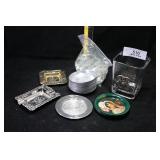 1 - Mid Century Ashtray Table Topper 2 - Stainless Steel Bar Set Bar Ware 3 - Moroccan Bar Glasses & Ice Bowl Bucket 4 - Victorian Chimney Flu Cover 5 - Marigold Creamer & Sugar 6 - Set of 8 Patriotic Glasses w/ Eagles & Rack 7 - International Coin Dot Drinking Glasses 8 - Lot of Amber Glassware-7 Piece Lot 9 - MCM Blue Barware Set -All for one money! 10 - Two Missouri & Tom Sawyer Souvenir Glasses 11 - Blue Grape Pattern Chip & Dip Plus Shot Glass 12 - Clear/Cranberry Chip and Dip Set 13 - Amber Crackled Glass Pitcher 14 - Cobalt Blue Decanter 15 - Cobalt & Silver Pitcher 16 - Turquoise & Gold on Clear Bar Set 19 - 3 Drinking Glasses 20 - Beautiful Pink Dresser/Powder Box with Butterflies 21 - Set of 4 Drinking Glasses 22 - Two Ruby Red Glasses 23 - Set of 8 Coin Dot Drinking Glasses 24 - Silver over Clear Lidded Candy Dish Jar 25 - Retro Juice Pitcher 26 - Vintage Juice Pitcher No 2 27 - Vintage Lemon & Lime Juice Pitcher 28 - Vintage Pyrex Juice Pitcher 29 - Vintage Retro Juice Pitcher 30 - 2 Vintage Bar Glasses 31 - Huge lot of Gold Banded Drinking Glasses 33 - Lot of Gray Smoked Glasses LOOK 34 - Massive Lot of Gold Accented Glasses LOOK ALL FOR ONE MONEY! 35 - Lot of Silver Banded Barware Glasses/Bowl +++ 36 - 6 Tall Glasses 37 - Green over Amber Drinking Glasses RETRO 38 - Stainless MCM French Press, Oiler Salt & Pepper Frieling French Press 39 - Mid Century Cheese Boards & Trivet 40 - Cream & Sugar Sets & More All for one money 41 - Mid Century Bar Glasses & Ice Bucket 42 - "Vegetable" Platters & Watermelon Salt/Pepper 43 - Leaded Crystal Decanter & Glasses & Candleholders 44 - Mixed Lot of Treasures-All for one money 45 - MCM Bird Bowl 46 - Lot of Glass Fruit & Vegetables 47 - Set of 8 Blue Drinking Glasses- Fostoria ? 48 - Large Lot of Clear Glass Serving Items/Glasses 49 - Large Lot of Etched Stemware-All for one money! 50 - Beautiufl Etched Glasses & Pitcher 51 - Fairy Lamp/Powder Box/Trinket Box & MORE +++ 51 52 - Huge Lot of Kitchen Essentials All for one money! 53 - TFAL Bread Maker & Blender 54 - Two Luster Ware Pitchers 55 - Brass & Copper Planter & Wood Trays 56 - Mid Century Horse Ice Chest & Humidor 57 - Silver Coffee Box & Extras Lot Nice vintage jewelry box included also. 58 - Vintage State Fair Pinball Machine Toy 59 - Janome Sewing Machine Jem Platinum 760 Complete and guaranteed to sew. Model JP 760 64 - Arrow Sign "Dairy Butter Milk Cheese" 65 - Box of 1960's Springfield New Leader Newspapers 66 - Vintage Photos Album & Metal Storage Box 67 - Stack of Decorator Art & Pictures 68 - 8 Christmas Glasses 70 - Wolfgang Puck Skillet w/ Lid & Bacon Press 71 - Card Players Themed Serving Pieces & More All for one money! 72 - Lot of 3 Pink Depression Glass Items 73 - Serving Platters & Extras Lot All for one money! 74 - Saki Set & Noodle Bowl +++ All for one money! 75 - Amber Bohemian Glass Lot All 3 pieces for one money! 77 - Retro Texas Ware Style Bowls & Tray 78 - Lot of 3 Serving Platters 79 - Two Cheese Servers 80 - Retro Frosted Blue Pitcher & Green Glass Set 81 - Vintage Retro Ash Tray Lot - All for one money! 82 - Retro Ash Tray Lot 83 - Lot of Vintage Ashtrays Includes Golden Nugget Las Vegas Ash Tray 84 - Punch Cigar Advertising Ashtray & More 85 - Retro Ash Tray Lot-All for one money! 86 - Vintage Retro Ash Tray Lot 87 - Gold Dresser Mirror & Extras Lot All for one money! 88 - Cape Cod Ruby Red Lot 89 - MCM Berry or Salad Bowl Set 90 - 3 Serving Bowls-Carnival & Pyrex & More 91 - Beautiful Etched Clear Compote & Covered Bowl 92 - Lot of 2 Pink Pyrex Casserole Dishes 93 - Set of Pyrex Nesting Bowls Wheat Pattern 94 - Cereal Canister & Extras Lot 101 - Lot of Misc Glassware 102 - Lot of Coffee Mugs & More 103 - Glass Egg & Teddy Coin Bank & Preicous Moments All for one money. 104 - Lot of Beautiful Fine China Pill/Trinket Boxes 105 - Vintage Candleholder Globes 106 - Green Glass Salad Bowl Set & Glasses Huge lot. Two different size glasses, complete berry or salad bowl set, salt & pepper and more. All for one money! 107 - Vintage Sears Roebuck Canister Set & Clock What a cool blast from the past. 108 - Huge Blue Oriental Asian Decorator Lot Large vase, 2 ginger jars and 3 smaller vases. All for one money! 109 - Lot of 3 Vases-All for one money! 110 - Lot of 3 Ice Buckets George's Girard Bar Ware 111 - Franciscan Place Setting Plates "Antique Green" Pattern 112 - Fire King Bowl & White Vase & More 113 - Saladmaster Kitchen Chopper 114 - Mixed Lot of Bar Ware-Toppers, Mixers & More 115 - Blown Glass Oil Burner & More 116 - Lefton China Hand w/ Flowers Tray 117 - Etched Glasses w/ Grape Pattern 118 - Lot of Science Beakers & Many Pyrex All for one money! Many Pyrex 119 - MCM Lot of Salt & Pepper Shakers All for one money. 120 - Porcelain Lidded Trinket Box 121 - Heavy Frosted Glass Pitcher & 5 Glasses Set 122 - Wood Car Box for Decks of Cards 124 - Set of Coin Glasses-Retro 125 - Antique Iron Stone Pitcher & Bowl A marriage but still very nice set. 126 - MCM Ice Bucket & 6 Stemware Glasses 127 - Haeger Pottery Vase 3879 with Metal Handle 128 - Candle Holder "LAUGH" Table Topper 129 - 2 Blue Canisters 130 - Wrought Iron Dinner Triangle Ranch Bell 131 - Wrought Iron Cotton Scale 132 - MCM Humidor Tobacco Container 133 - Lot of 3 Trays-All for one money! 134 - Pampered Chef Batter Bowl & Bunt Cake Pan 135 - Longaberger Pottery 3 Piece Lot 136 - Polish Pottery Spoon Rest & 2 Others 137 - MCM Divided Serving Dish 138 - Mid Century Divided Ash Tray Avocado Pretty! 139 - Retro Highball Glass Set with Owls 140 - Large Lot of Retro Green Glasses All for one money! 141 - Set of 5 Mid Century Bar Glasses 142 - Set of 6 Hollywood Studios Shot Glasses 143 - Large Beverage Dispenser Nice brass hardware and good top. 144 - Glass "Hershey's Kiss" Candy Dish 145 - Lillet Advertising Canister 146 - Pool Side Ice Bucket & 4 Glasses Pool safe plastic set. 147 - Groovy Ice Bucket MCM 148 - Retro vintage Ice Bucket Barware 149 - Huge Lot of Shot Glasses All for one money! 151 - Retro Py