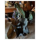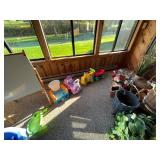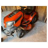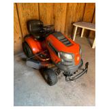 MISC.: Husqvarna YTH 22V42 riding lawn mower (169 hours), Craftsman blower, Shovels & yard tools, Wheel barrow, Tools, Router, Vice, Filing cabinets, Saws, Weed whacker, Portable chairs, Kitchenware, Small kitchen appliances, Pots & pans, Step stool, Lots of boxes to pick thru and MUCH MORE!