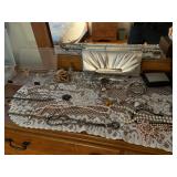 COLLECTIBLES: Pyrex, Costume jewelry, Jewelry boxes, Touch lamp, Hurricane lamps, Clocks, Bell collection, Art prints, Glass & China, Aluminum ware, Wall art, Ladies watches, Lamps, Elgin anniversary clock, Books, Emerson stereo, Flat screen TV, Silk flowers and plants, Puzzles, Christmas & holiday decor, Wicker baskets, Board games, Children's toys and MORE!